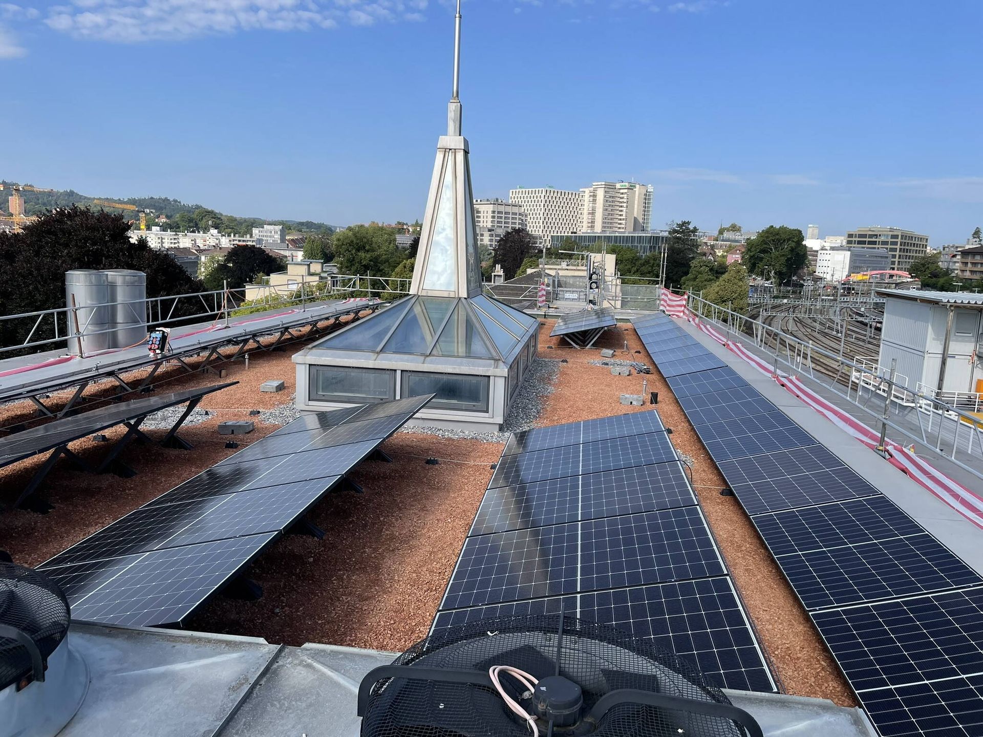 Right in the heart of Bern, we had the opportunity to install a solar power plant combined with a green roof.