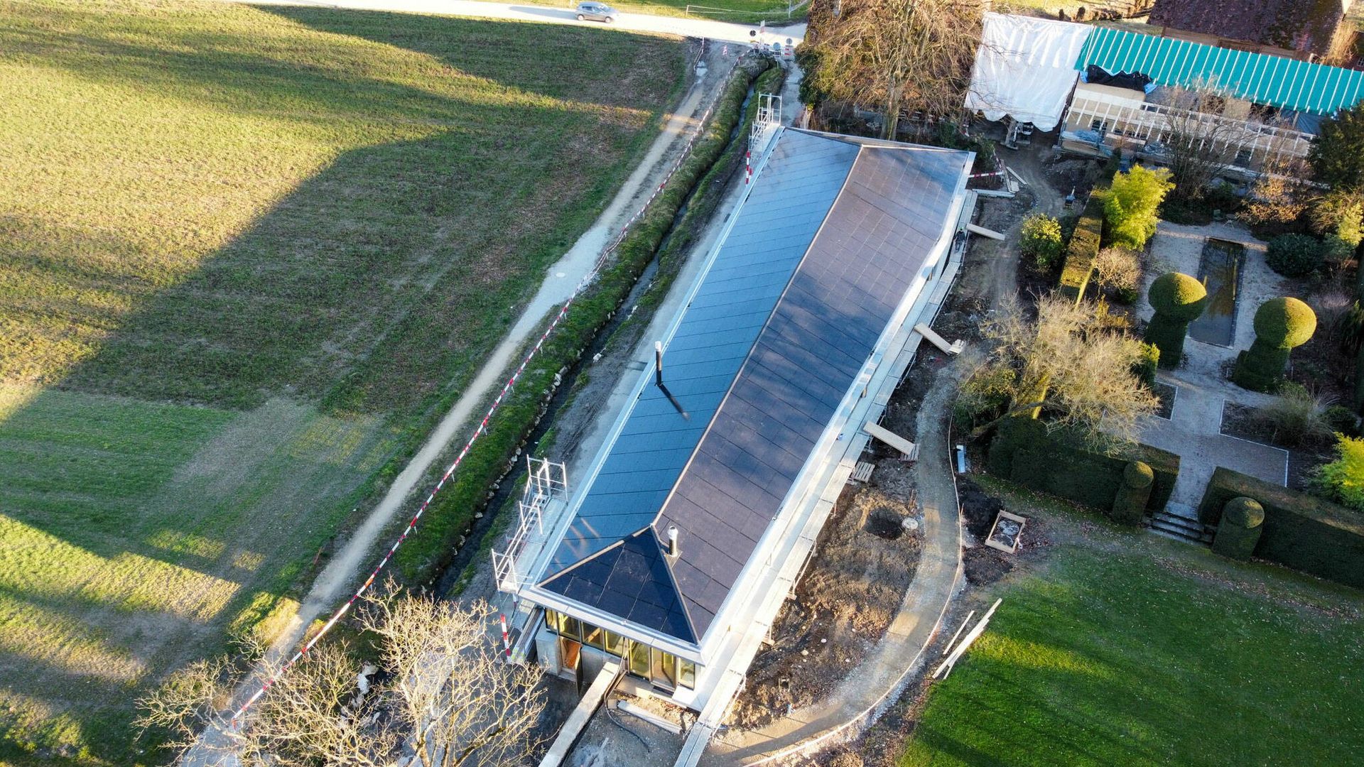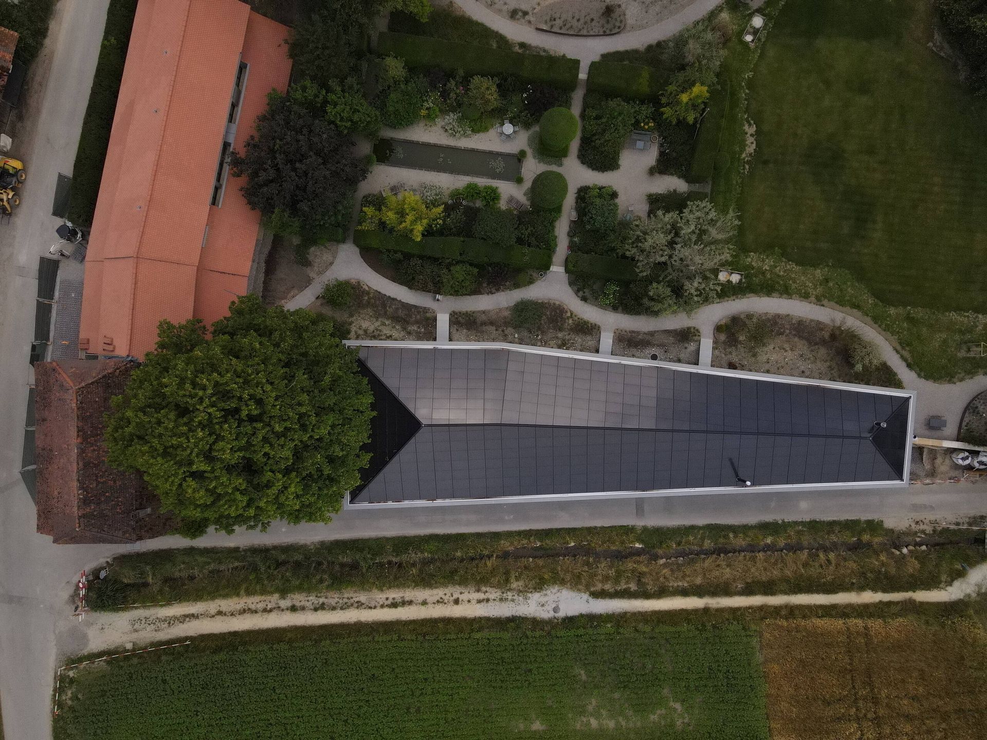 Auf der Scheune wird ebenfalls eine Photovoltaik Anlage mit einer Leistung von Rund 65 kWp realisiert werden, womit den Bewohnern des Areals künftig über 129 kWp Sonnenenergie zur Verfügung stehen wird.